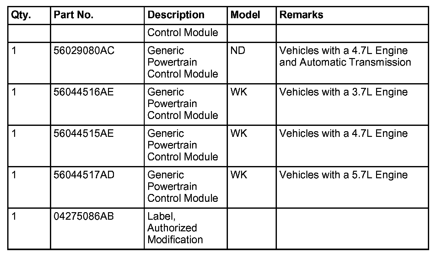 13. Type the necessary information on the "Authorized Modification Label" p/n 04275086AB and attach near the VECI label (Fig. 1).