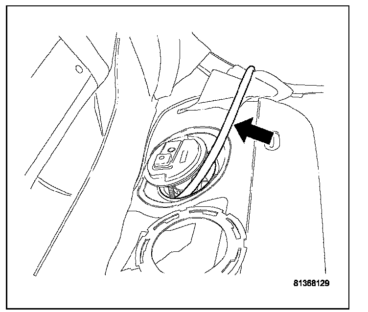 10. Drain fuel from left side of fuel tank. Lift module up enough to push hose into tank and drain. Do not spill fuel in interior of vehicle.