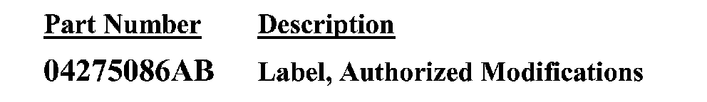 Due to the likelihood that the required labels are already in your parts inventory, no labels will be distributed initially. The following label may be ordered as needed.