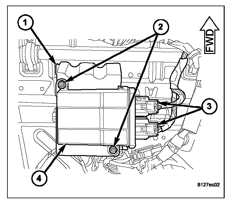 WARNING: NEVER REPLACE BOTH THE OCCUPANT RESTRAINT CONTROLLER (ORC) AND THE OCCUPANT CLASSIFICATION MODULE (OCM) AT THE SAME TIME. IF BOTH REQUIRE REPLACEMENT, REPLACE ONE, THEN PERFORM THE AIRBAG SYSTEM TEST BEFORE REPLACING THE OTHER. BOTH THE ORC AND THE OCM STORE OCCUPANT CLASSIFICATION SYSTEM (OCS) CALIBRATION DATA, WHICH THEY TRANSFER TO ONE ANOTHER WHEN ONE OF THEM IS REPLACED. IF BOTH ARE REPLACED AT THE SAME TIME, AN IRREVERSIBLE FAULT WILL BE SET IN BOTH MODULES AND THE OCS MAY MALFUNCTION AND CAUSE PERSONAL INJURY OR DEATH.REMOVAL