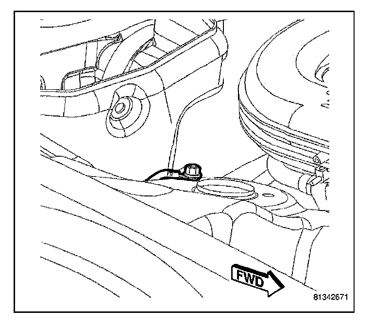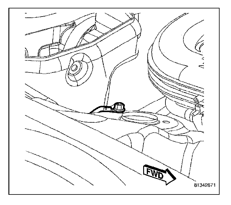 6. Install the fastener securing the battery negative cable to the right front strut tower.