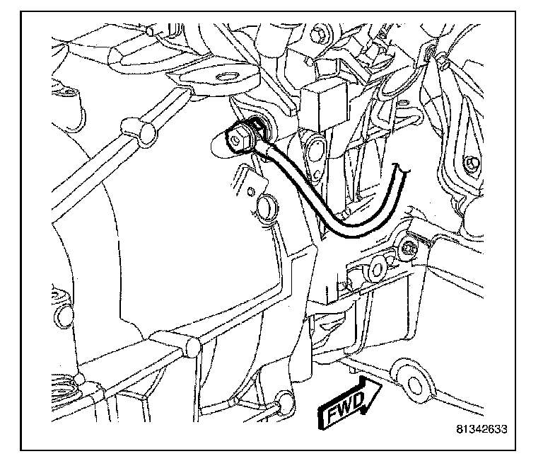3. Install the fastener securing the battery negative cable to the transmission housing. Torque the bolt to 11 N.m (8 ft. lbs.).