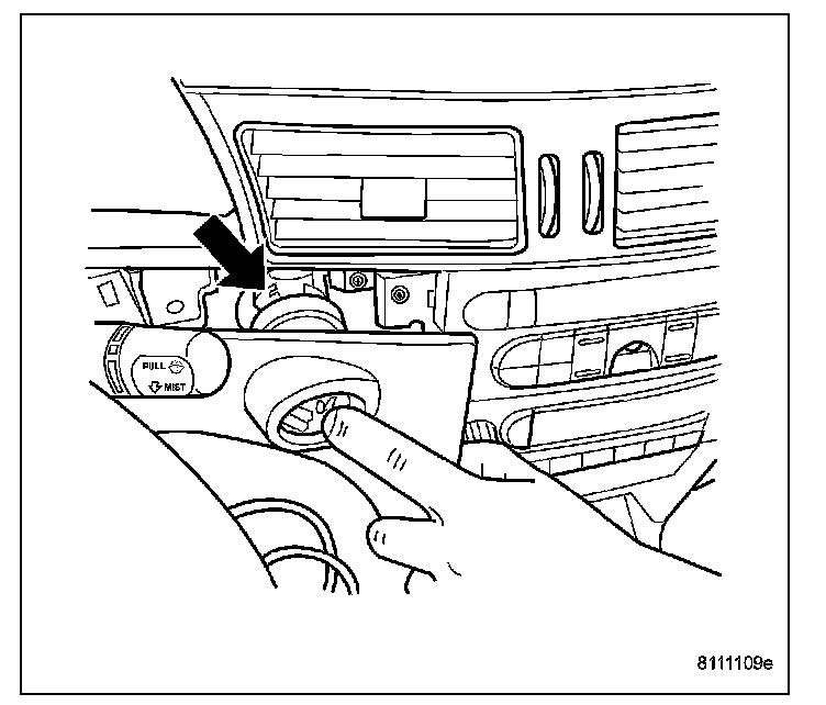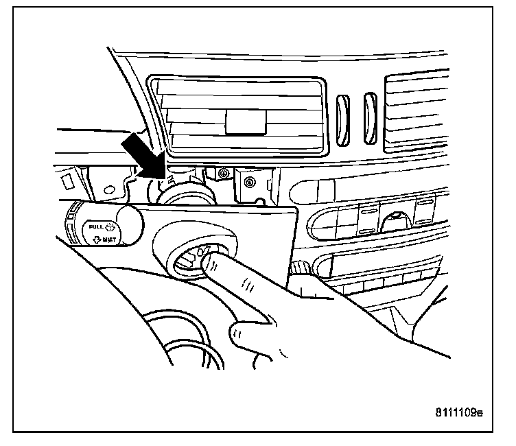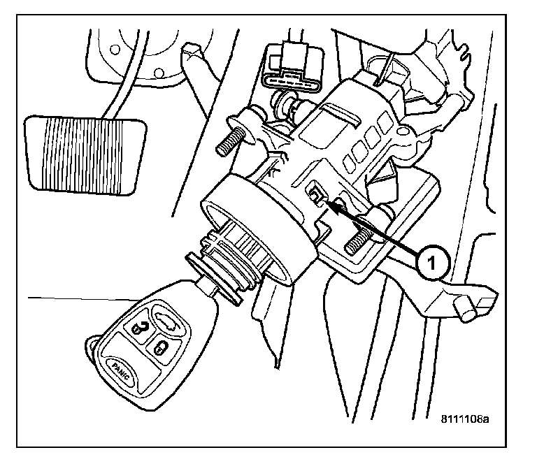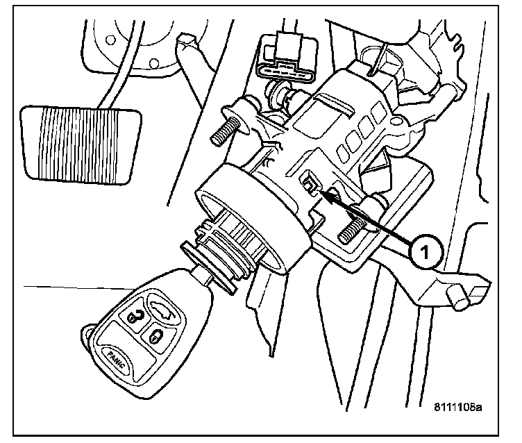 1. Install key in lock cylinder. Turn key to "ON" position (retaining tab on lock cylinder can be depressed).
