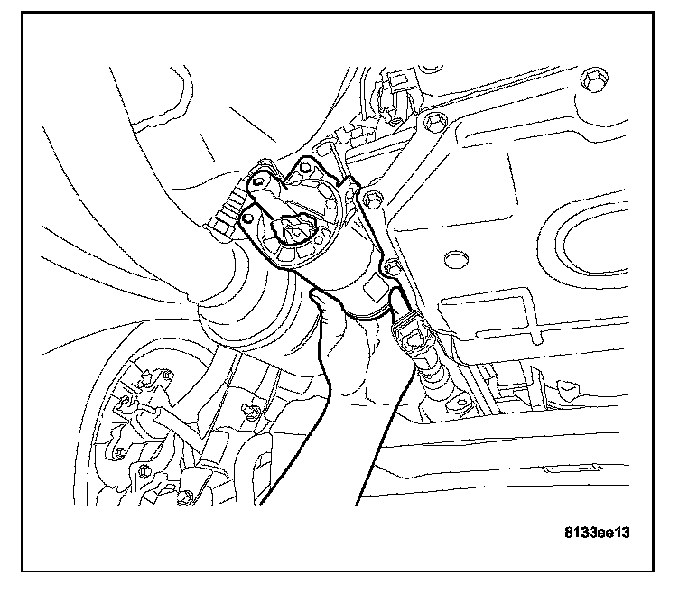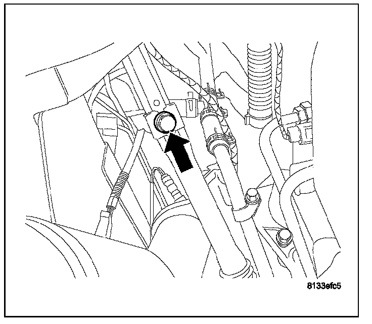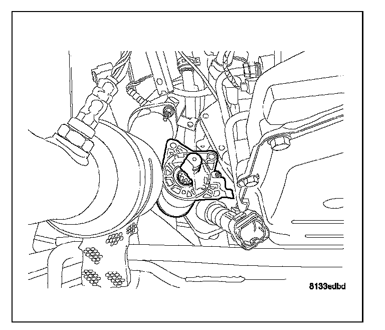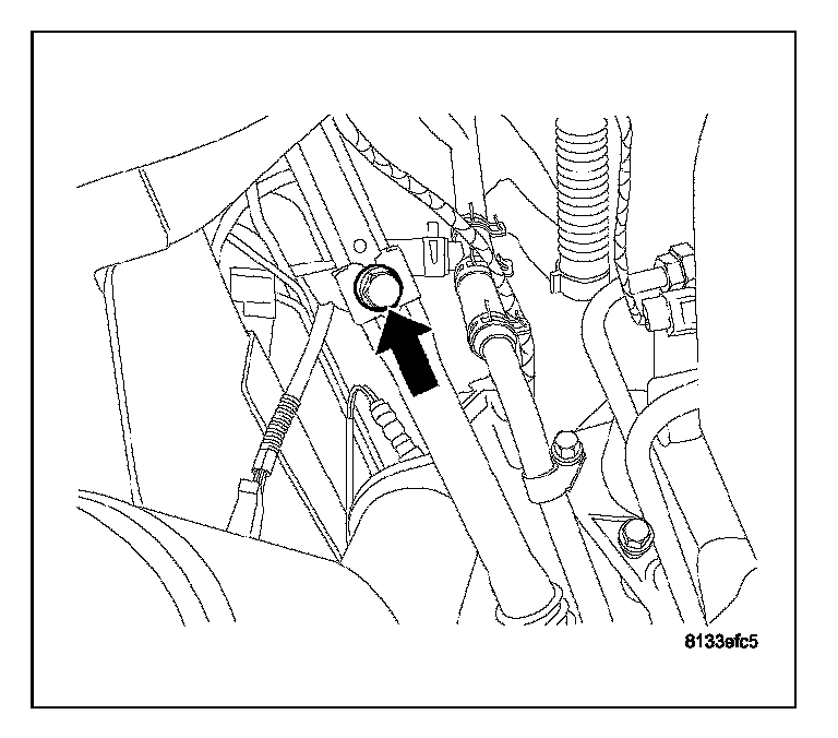 7. Install dust shield to the engine block using the plastic retainer to hold dust shield in place.