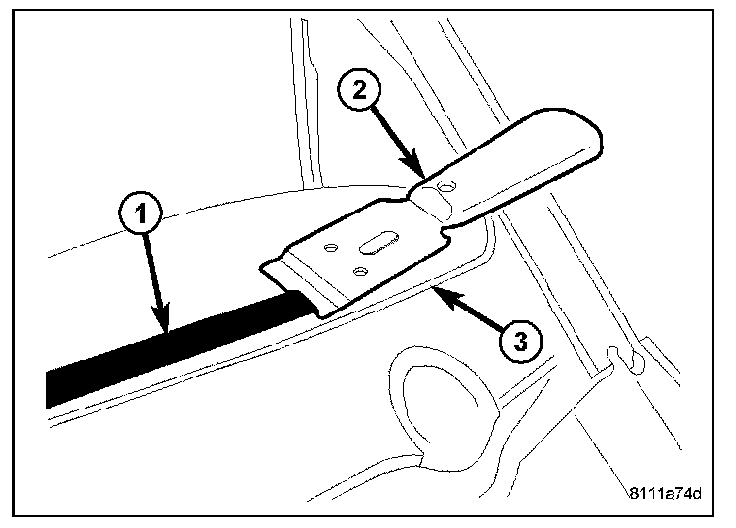 21. Carefully lower the backlite onto the backlite fence (3). Guide the backlite and the rubber seal (1) around the backlite into its proper location.