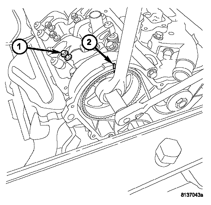 12. Hold right camshaft sprocket with a 36 mm (1 7/16 inch) box end wrench.