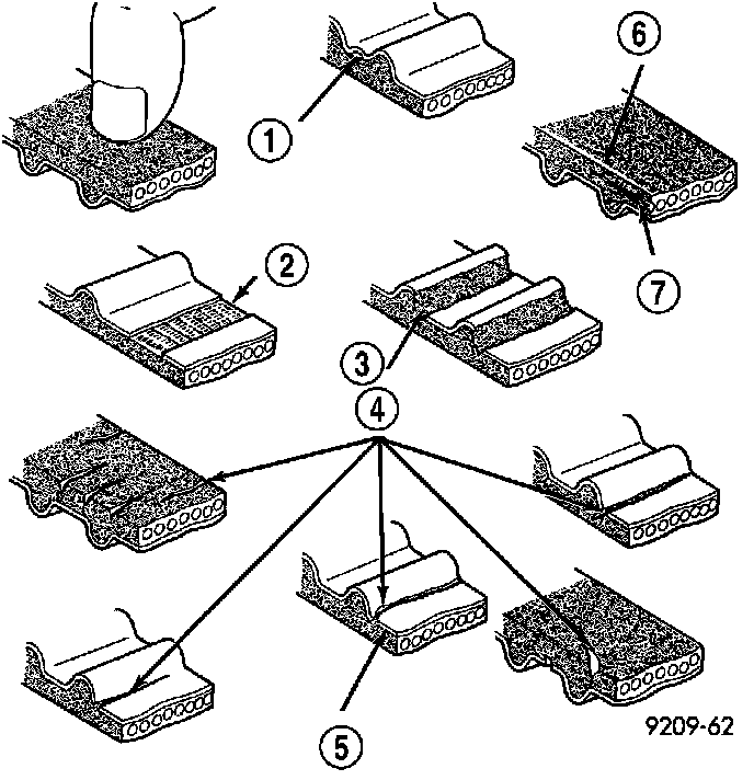 g. Abnormal wear (7) of belt sides. The sides are normal if they are sharp as if cut by a knife.