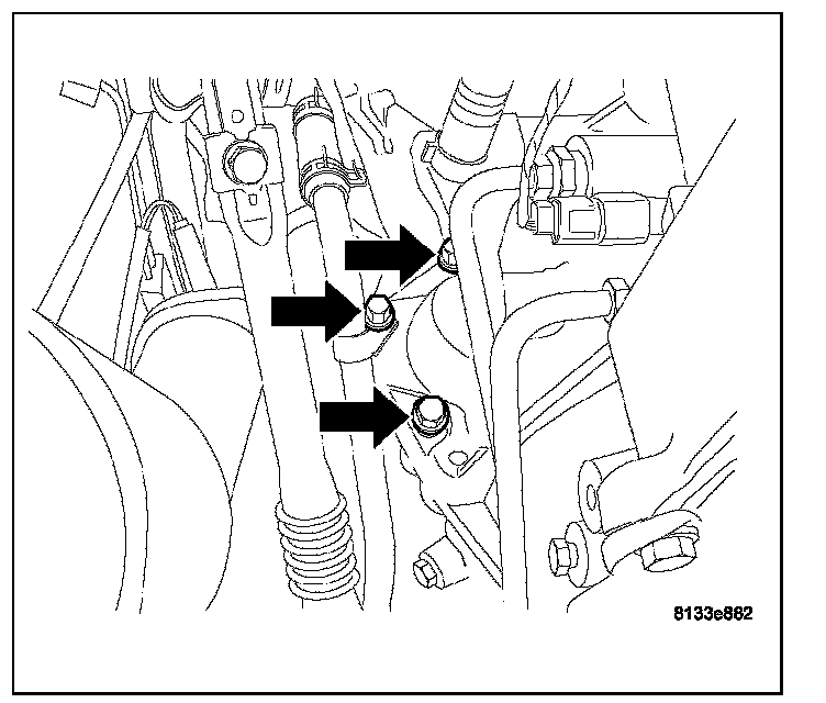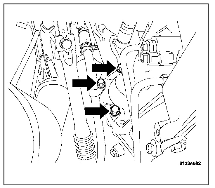 10. Remove the 3 starter mounting bolts and wiring clip.