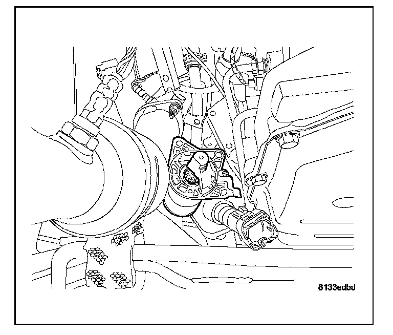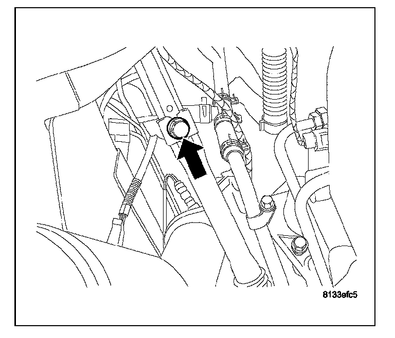 7. Install dust shield to the engine block using the plastic retainer to hold dust shield in place.