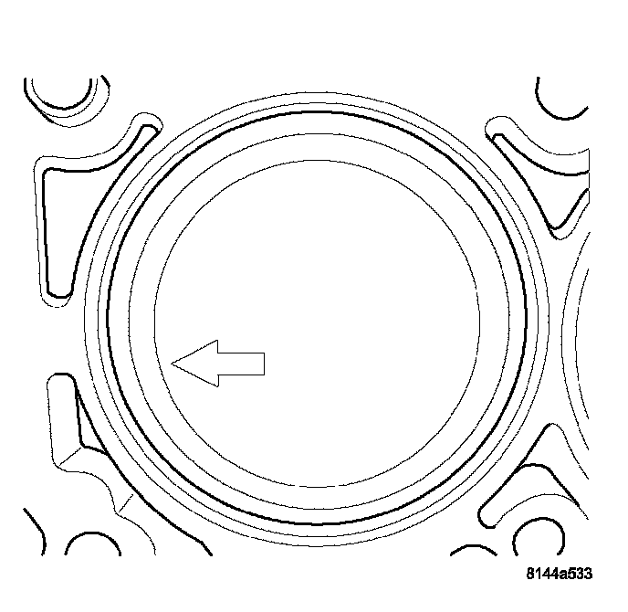 5. The pistons are marked on the piston pin bore surface with an raised F or arrow on top of piston indicating installation position. This mark must be pointing toward the front of engine on both cylinder banks.