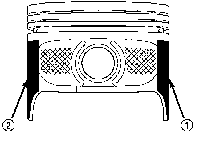 5. Piston installation into the cylinder bore requires slightly more pressure than that required for noncoated pistons. The bonded coating on the piston will give the appearance of a line-to-line fit with the cylinder bore.