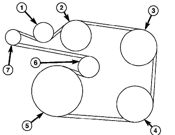 CAUTION: When installing the serpentine accessory drive belt, the belt MUST be routed correctly. If not, the engine may overheat due to the water pump rotating in the wrong direction.