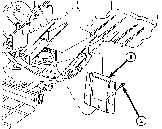 15. Remove the heat shield (2) from the transmission.