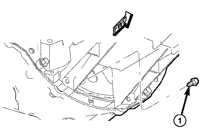 8. Remove the bolt (2) holding the torque converter access cover (1) to the transmission.