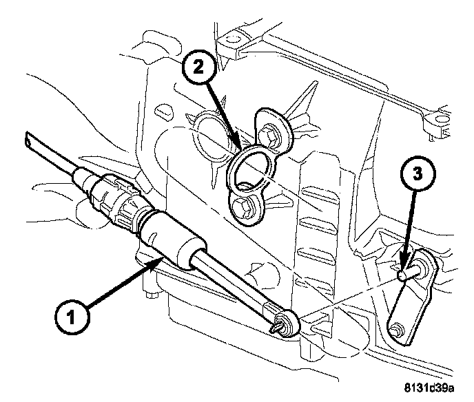 11. Disconnect the gearshift cable (1) from the transmission manual valve lever (3).