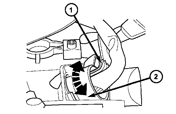 12. Loosen the bolts holding the shift cable retaining strap (2) to the transmission.