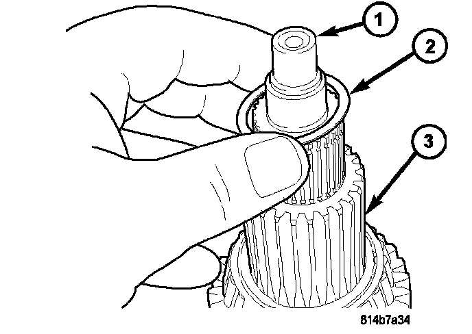 25. Install the snap-ring (2) to hold the input shaft (1) to the planetary gear system (3).