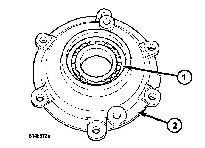 38. Install Holder 6958 (1) onto the front output flange (2).