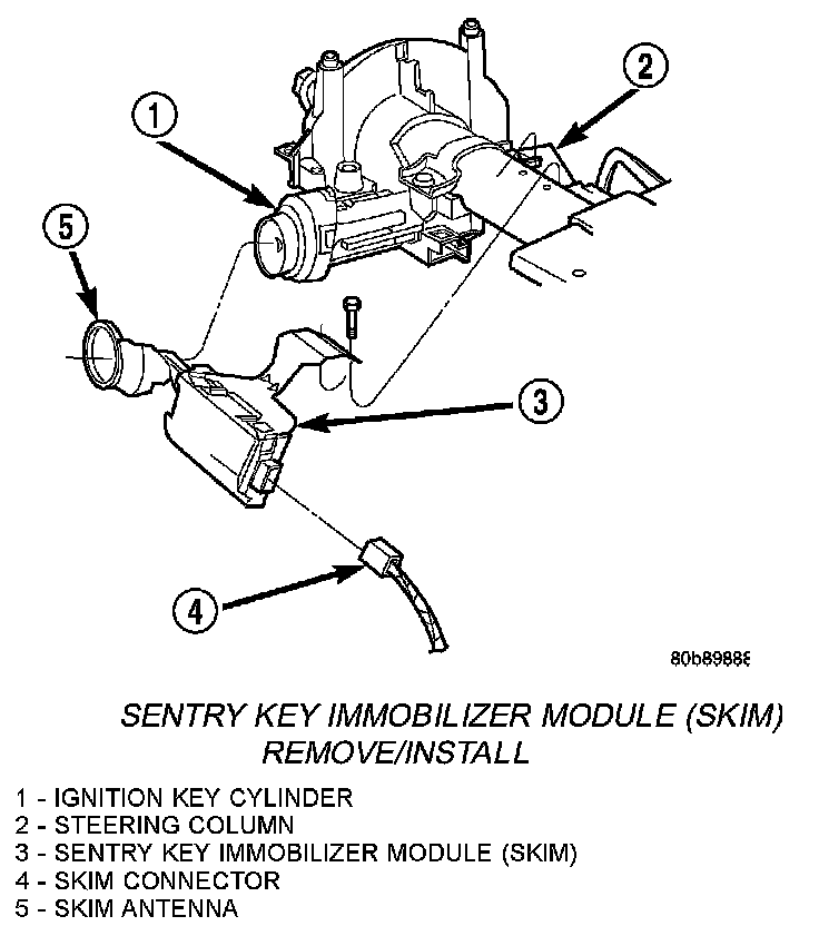 NOTE: If the SKIM is replaced with a new unit, a DRB III(R) scan tool MUST be used to initialize the new SKIM and to program at least two Sentry Key transponders.
