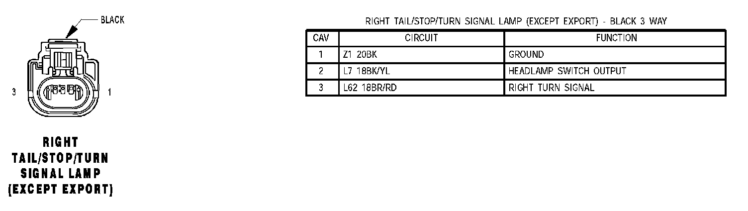 Right Tail/Stop/Turn Signal Lamp (Except Export):