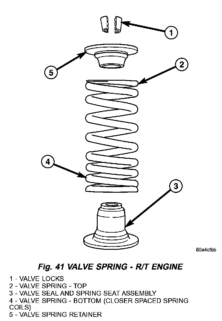NOTE: On the high output R/T engine, the valve spring MUST be oriented properly when installed.