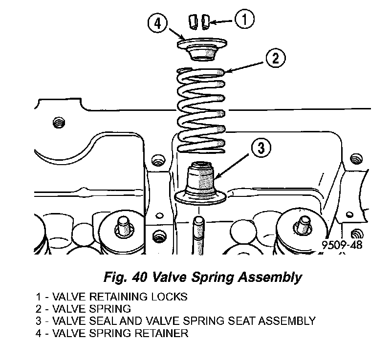 3. Position valve spring and retainer on spring seat (Fig. 40) or (Fig. 41).
