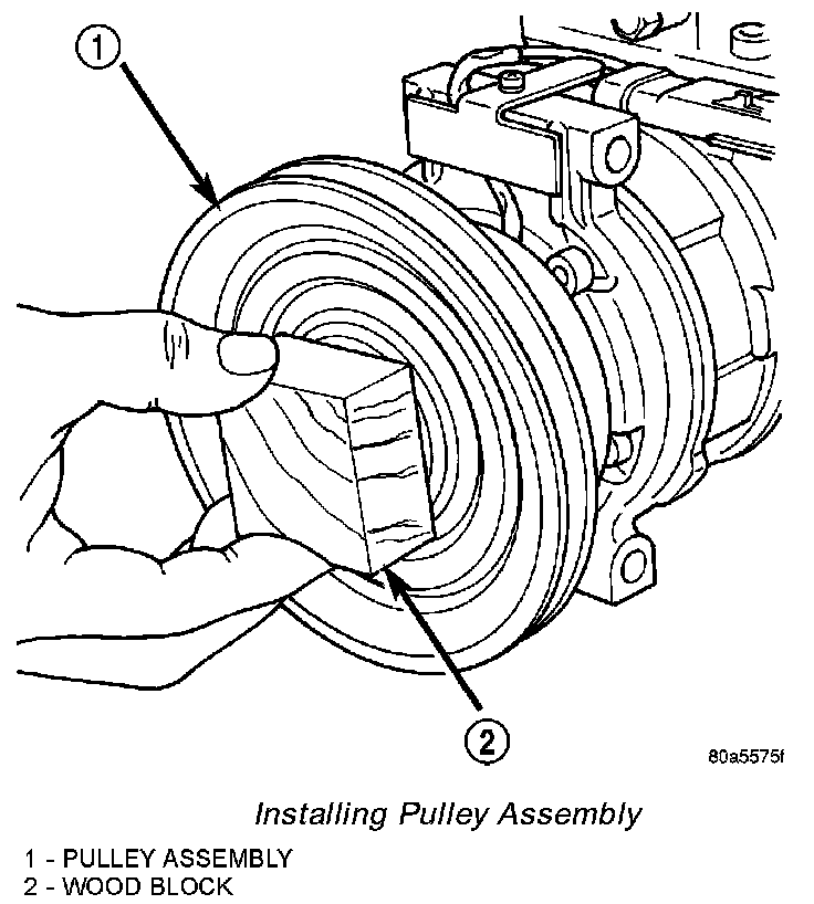 3. Install pulley assembly to compressor. If necessary, tap gently with a block of wood on the friction surface.