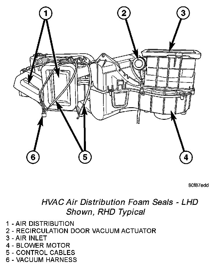 HVAC Air Distribution Foam Seals - LHD Shown, RHD Typical: