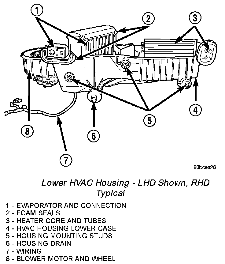 Lower HVAC Housing - LHD Shown, RHD Typical: