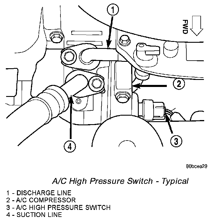 WARNING: THE REFRIGERANT MUST BE REMOVED FROM THE SYSTEM BEFORE REMOVING THE A/C HIGH PRESSURE SWITCH.REMOVAL
