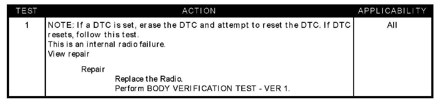 This symptom is diagnosed using the test CASSETTE PLAYER INOP