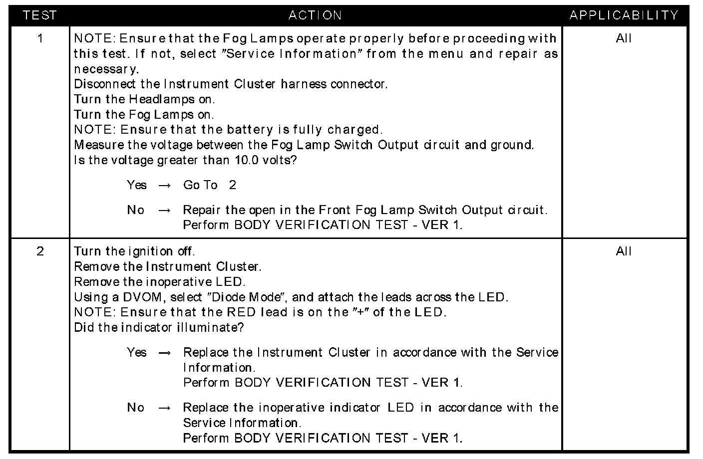 FRONT FOG LAMP INDICATOR INOPERATIVE