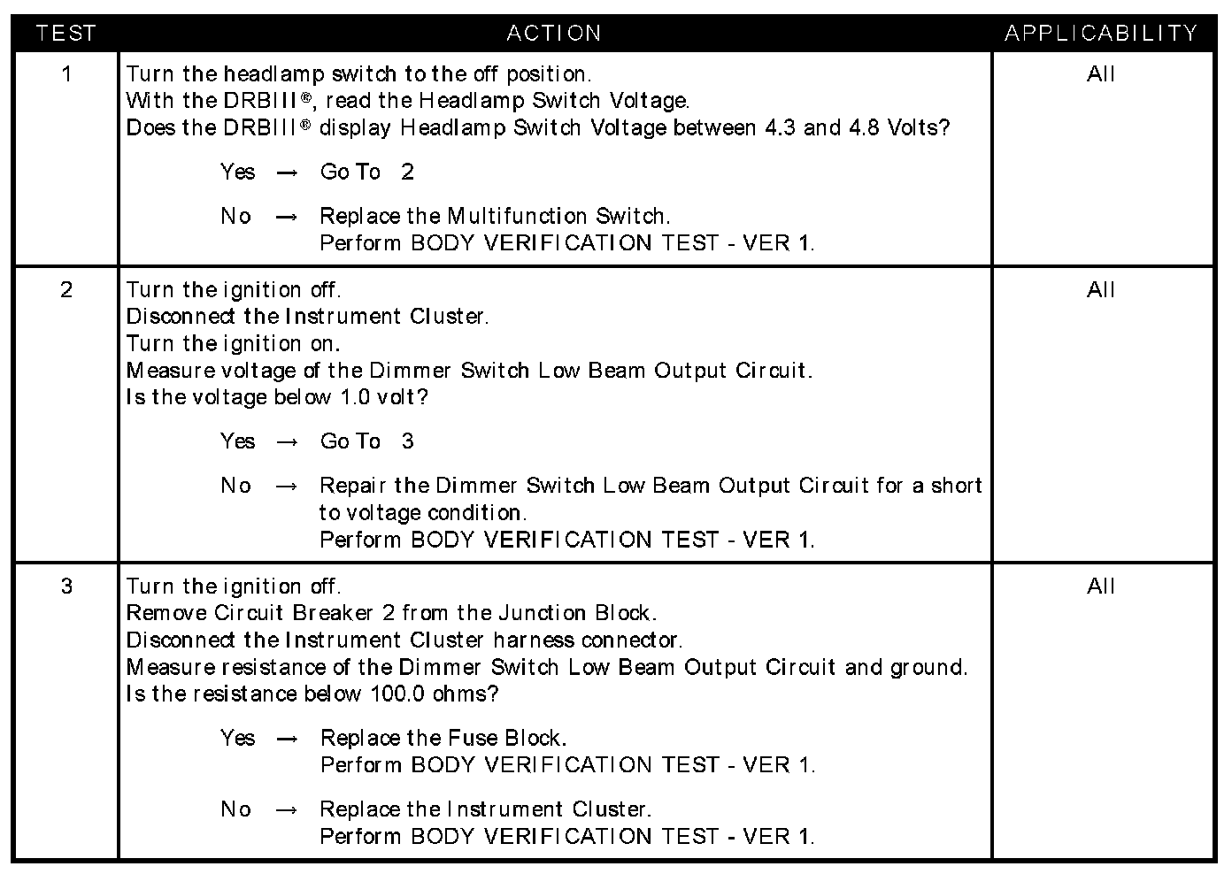 LOW BEAM HEADLAMPS WILL NOT TURN OFF
