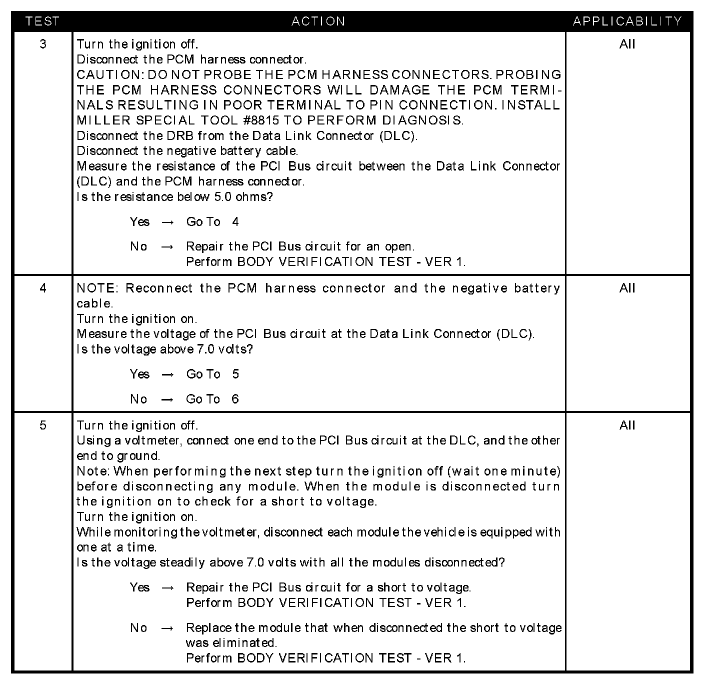 - Open PCI bus circuit at the data link connector (DLC)