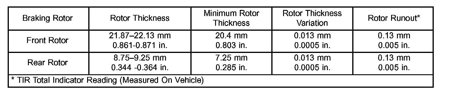 BRAKE ROTOR LIMITS/SPECIFICATIONS: