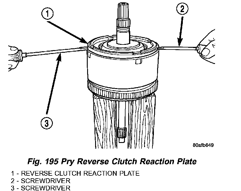 4. Pry up and remove reverse clutch reaction plate (Fig. 195).