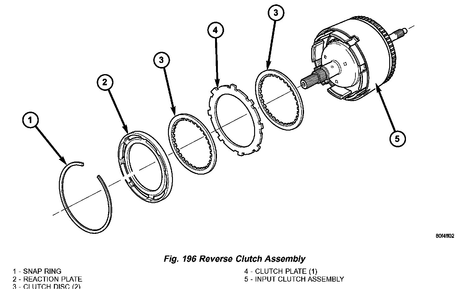 5. Remove reverse clutch pack (Fig. 196). Tag components for assembly identification.