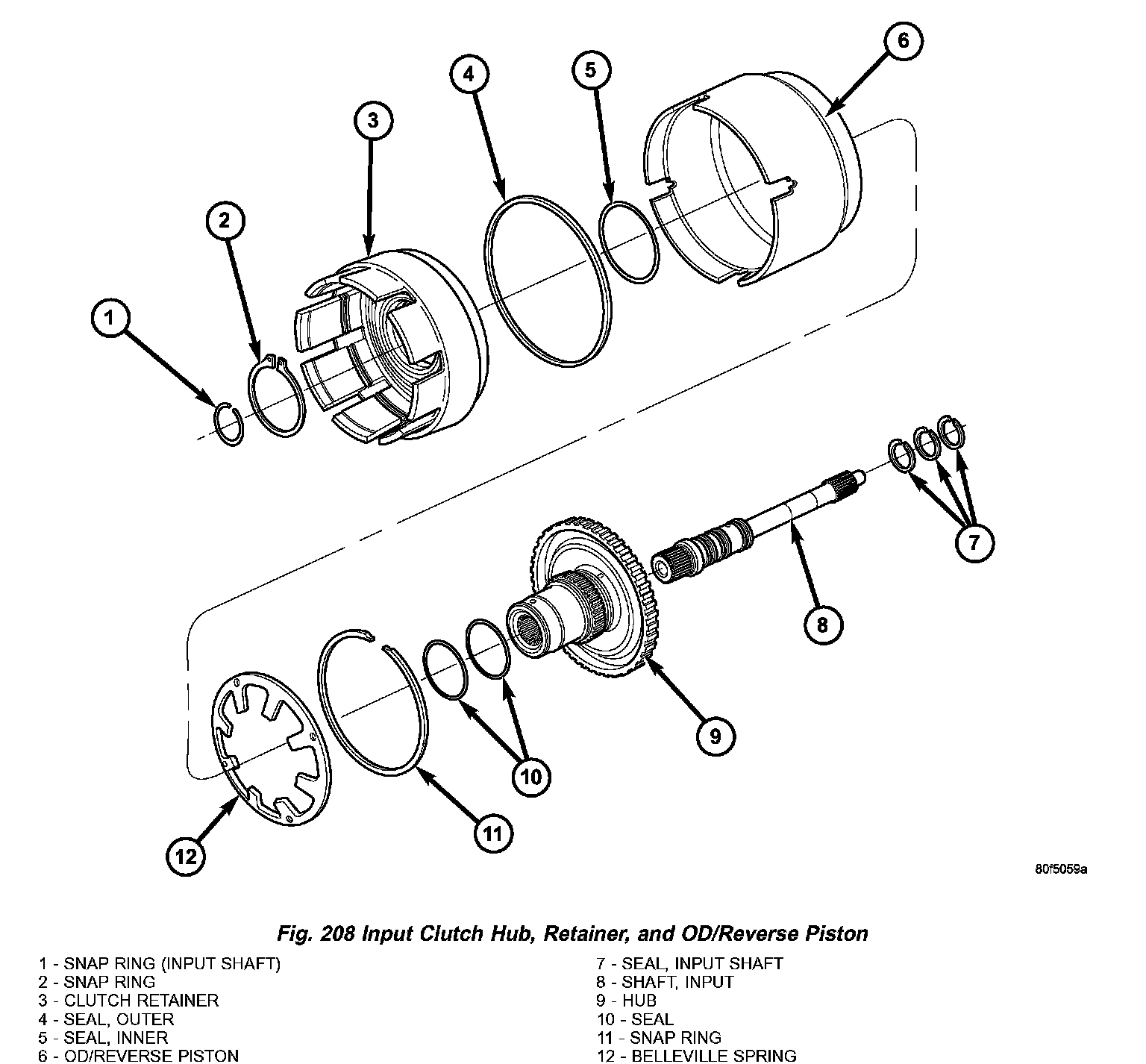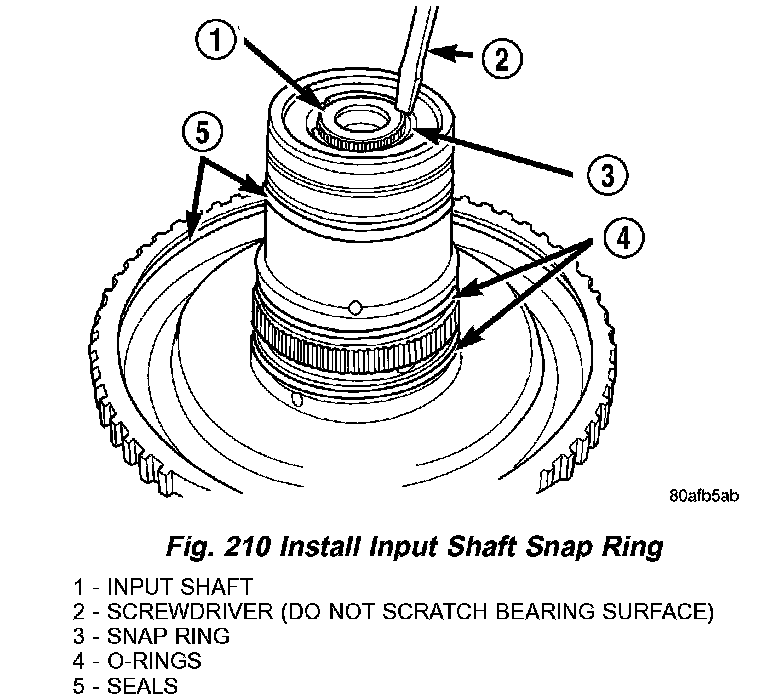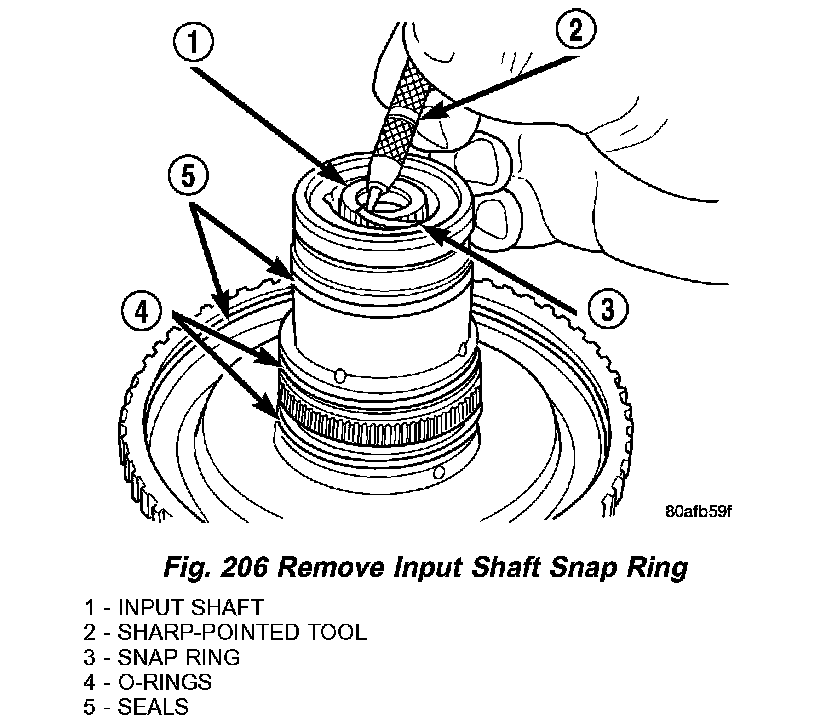19. Remove input shaft to input clutch hub snap ring (Fig. 206) (Fig. 208).