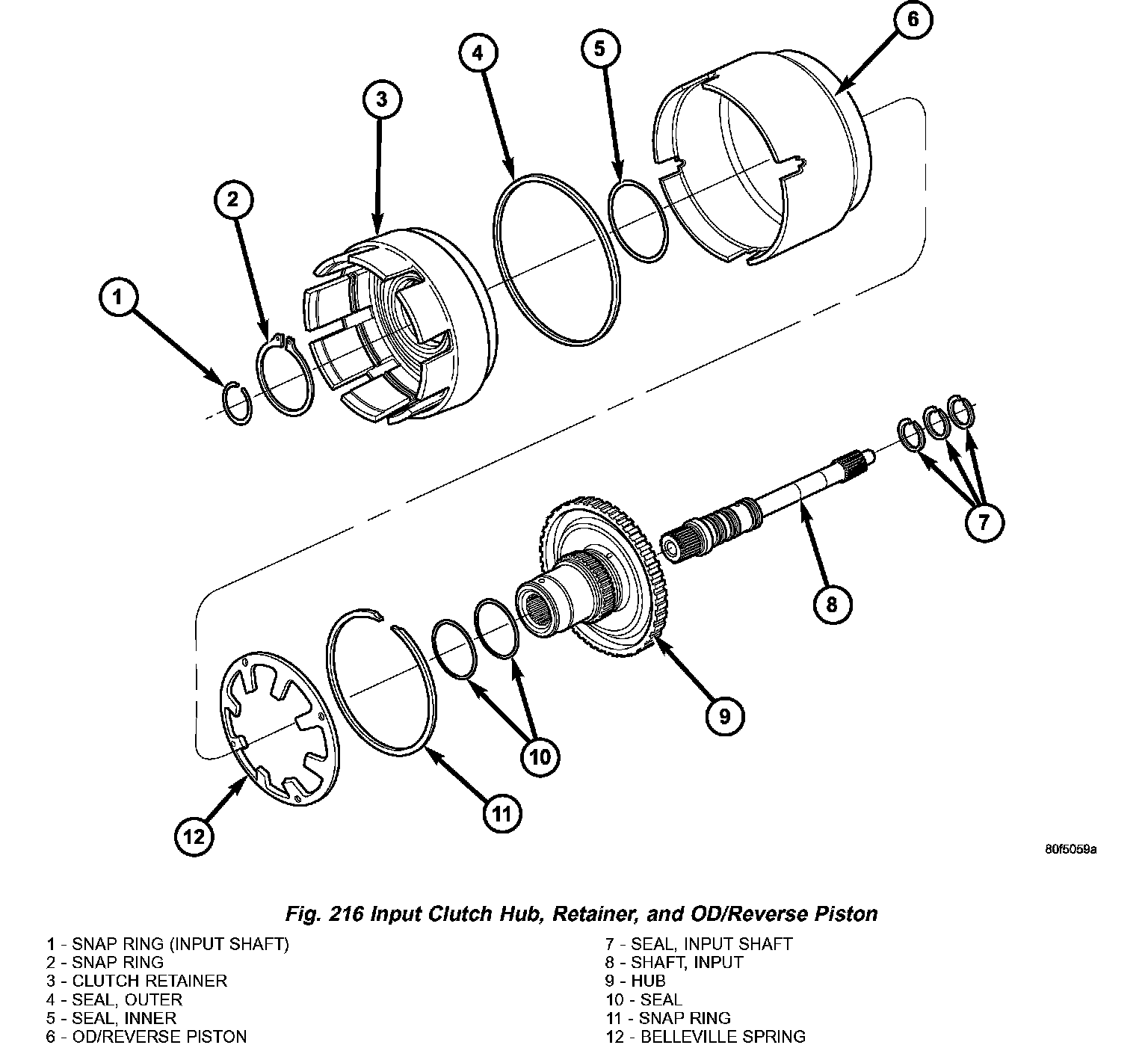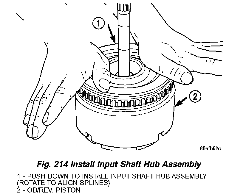 5. Install the input hub/shaft assy. to the OD/Reverse piston/clutch retainer assy. (Fig. 214).