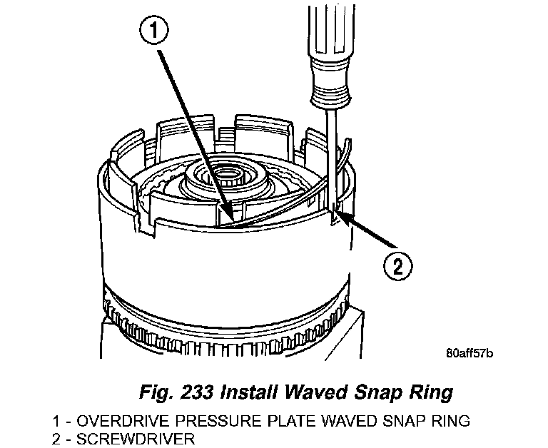 22. Install OD pressure plate waved snap ring (Fig. 233).