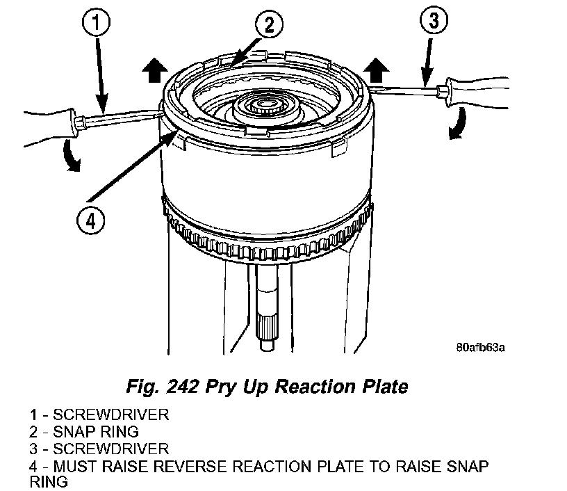 31. Pry up reverse reaction plate to seat against snap ring (Fig. 242).