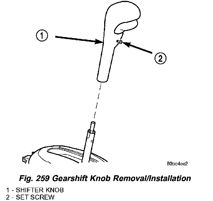 2. Loosen set screw and remove knob from shifter handle (Fig. 259).