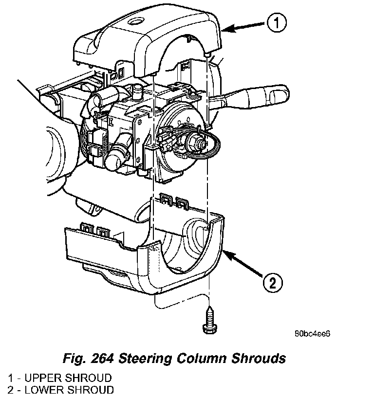 7. Remove the steering column upper and lower shrouds (Fig. 264).