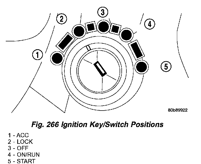 2. Turn the ignition key to the "OFF" or "ON/RUN" position (Fig. 266).