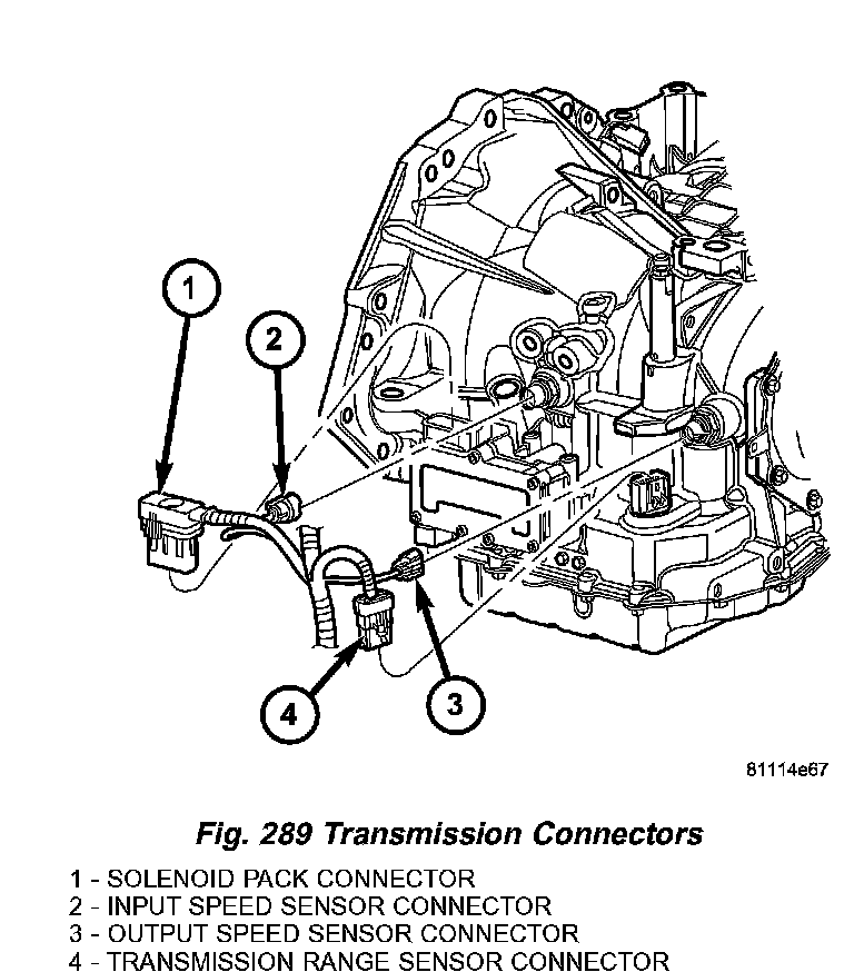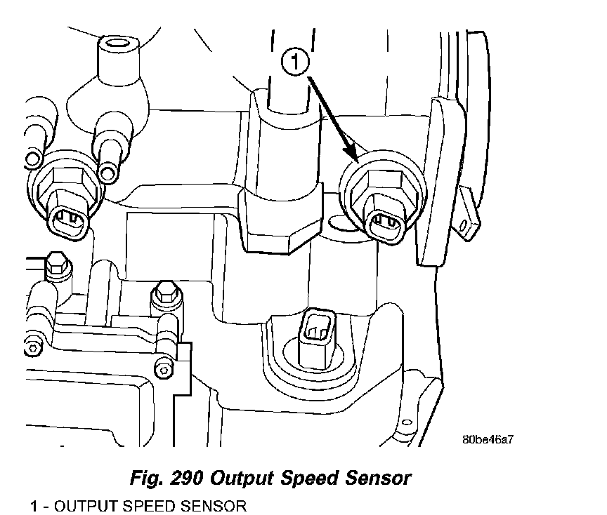 4. Unscrew and remove output speed sensor (Fig. 290).