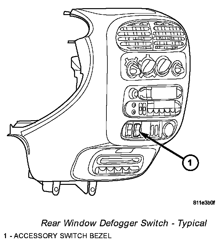 The rear window defogger switch is a control and timing circuit integrated into a single panel mounted switch assembly. The rear window defogger switch is located in the accessory switch bezel on the instrument panel, just below the radio.