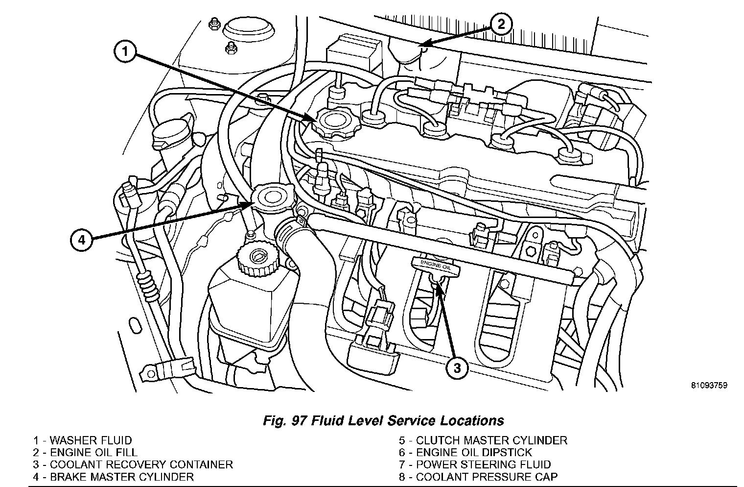 3. Remove oil fill cap (Fig. 97).