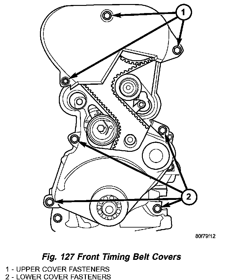2. Remove upper and lower front timing belt covers (Fig. 127).