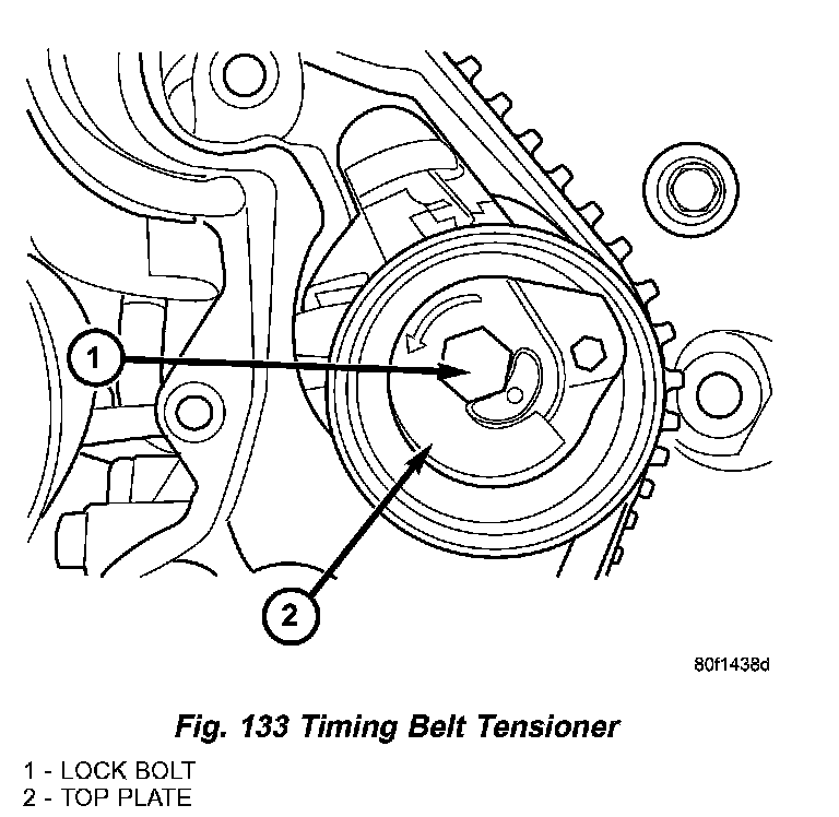 4. Loosen timing belt tensioner lock bolt (Fig. 133).