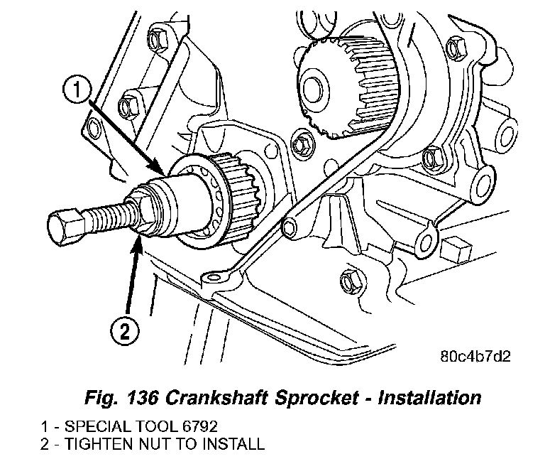 1. Install crankshaft sprocket using Special Tool 6792 (Fig. 136).